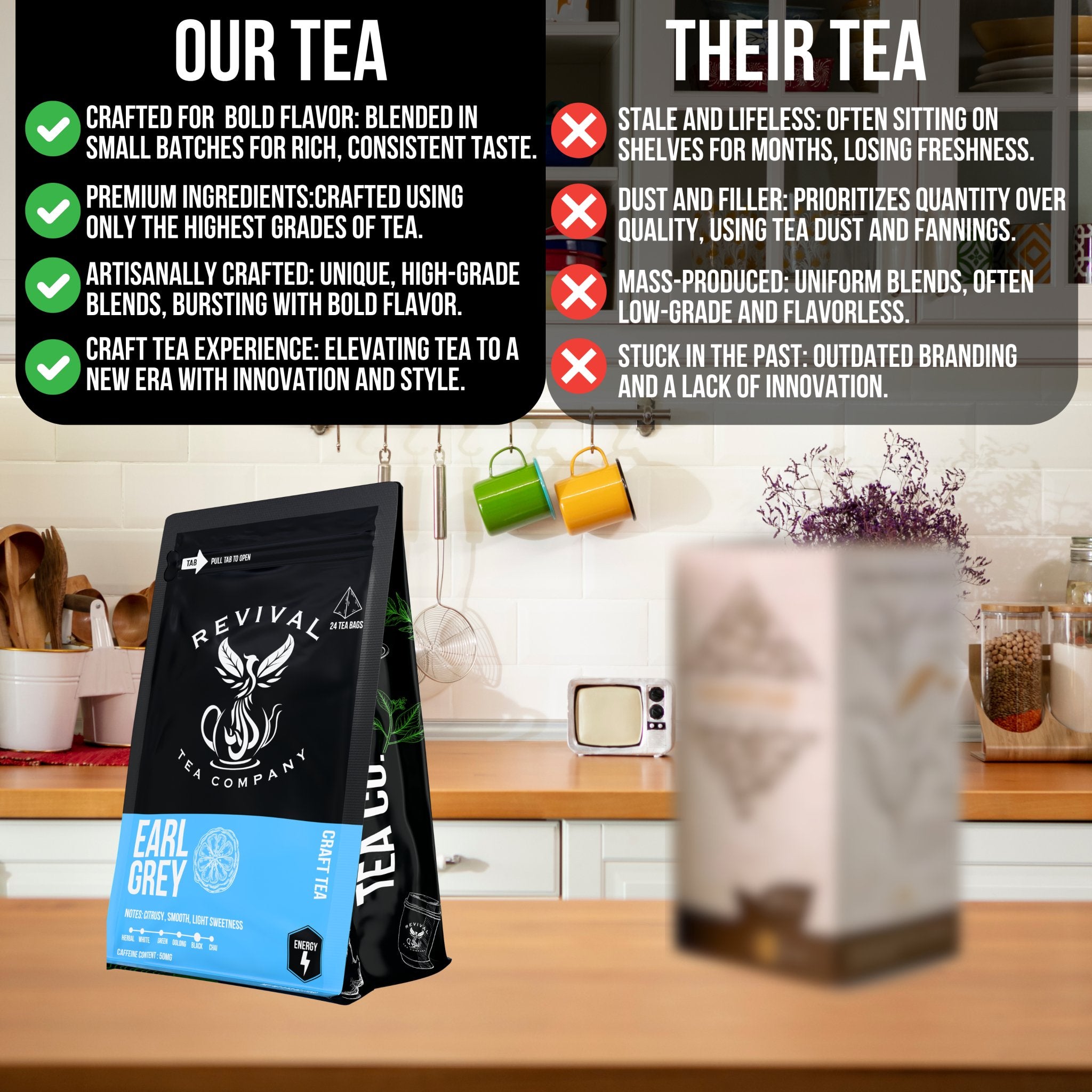 Discover the Difference: Treat yourself to the luxurious taste of our Earl Grey tea and experience the Revival Tea Company difference today!