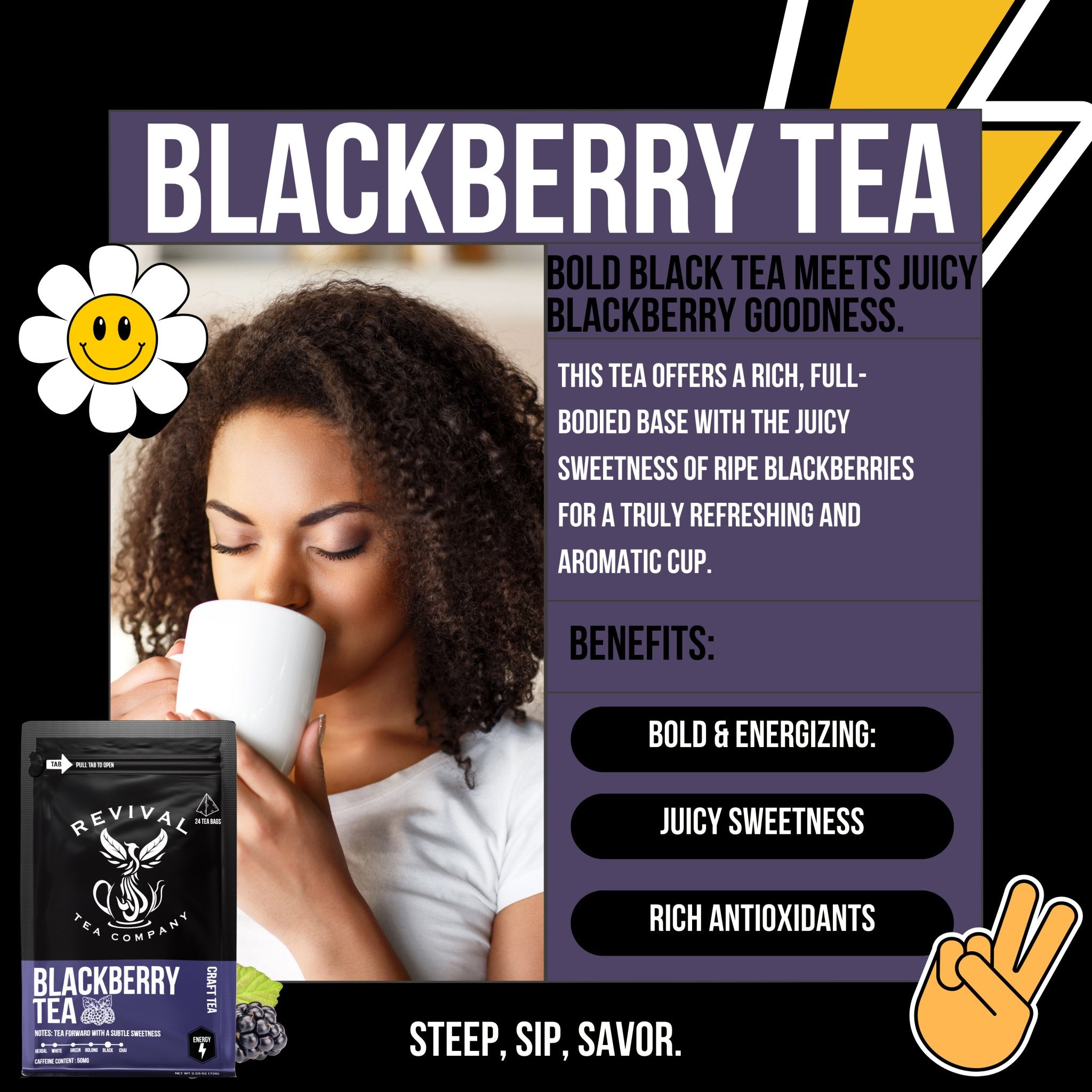 Indulge in the sophistication of our Blackberry Tea blend, a captivating fusion of flavors that promises a refreshing tea-drinking experience.Superior Quality: Crafted from a meticulous selection of premium black tea leaves and the finest blackberry essence, our Blackberry Tea blend promises an exceptional tea-drinking experience.Versatile Enjoyment: Whether you prefer it hot or chilled, our Blackberry Tea is the perfect companion for any moment, offering a delicate balance of berry sweetness and robust black tea flavor that will tantalize your taste buds.