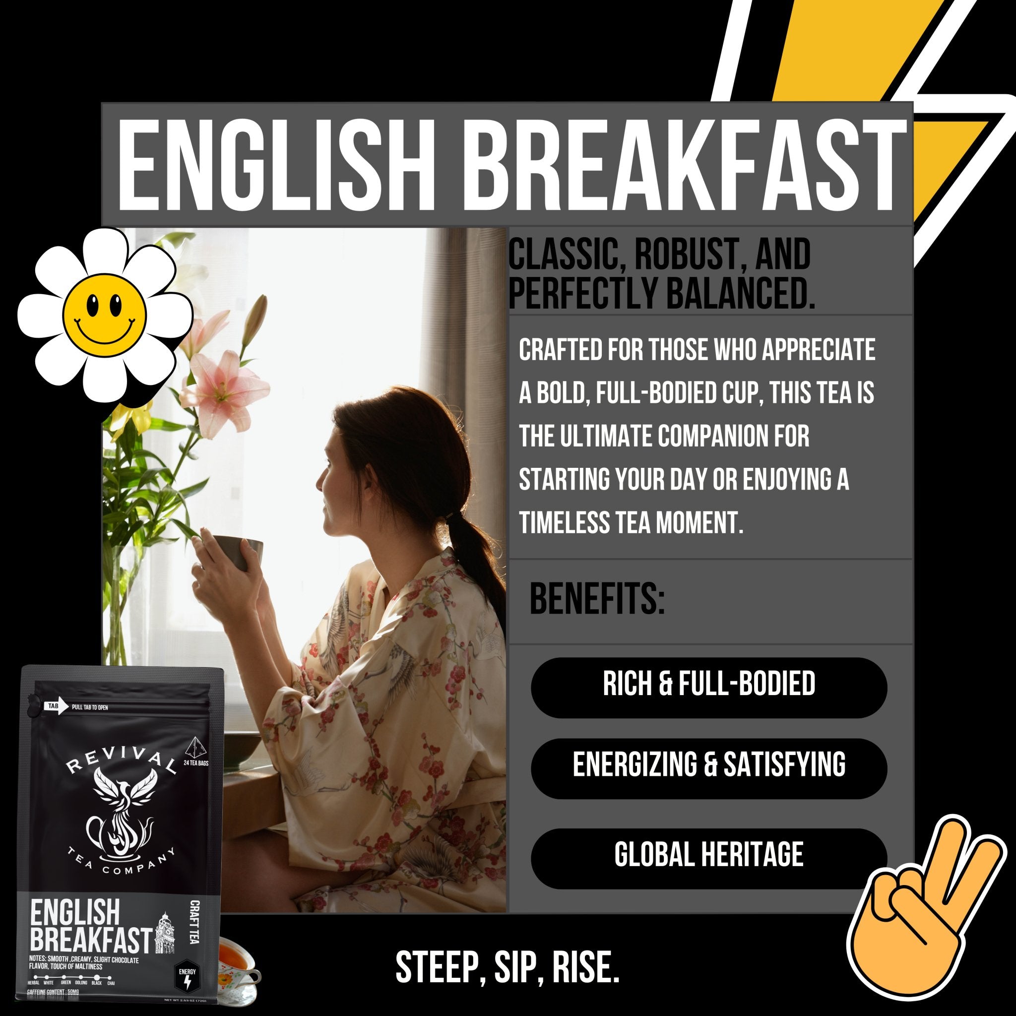 Discover the Difference: Treat yourself to the luxurious taste of our English Breakfast Tea today and experience the distinctive bold flavors of Revival Tea Company. Prepare to embark on a journey of unparalleled taste and satisfaction, where every sip brings you closer to the essence of morning bliss!