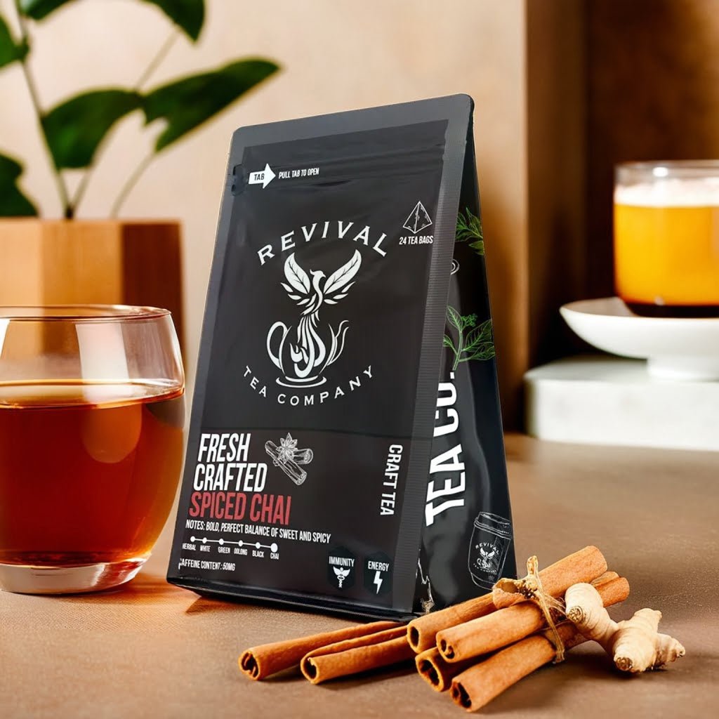 Discover the Difference: Enjoy the spicy sweet taste of our Fresh Crafted Spiced Chai today and experience the distinctive bold flavors of Revival Tea Company. Prepare to embark on a journey of unparalleled taste and satisfaction, where every sip brings you closer to tea perfection!