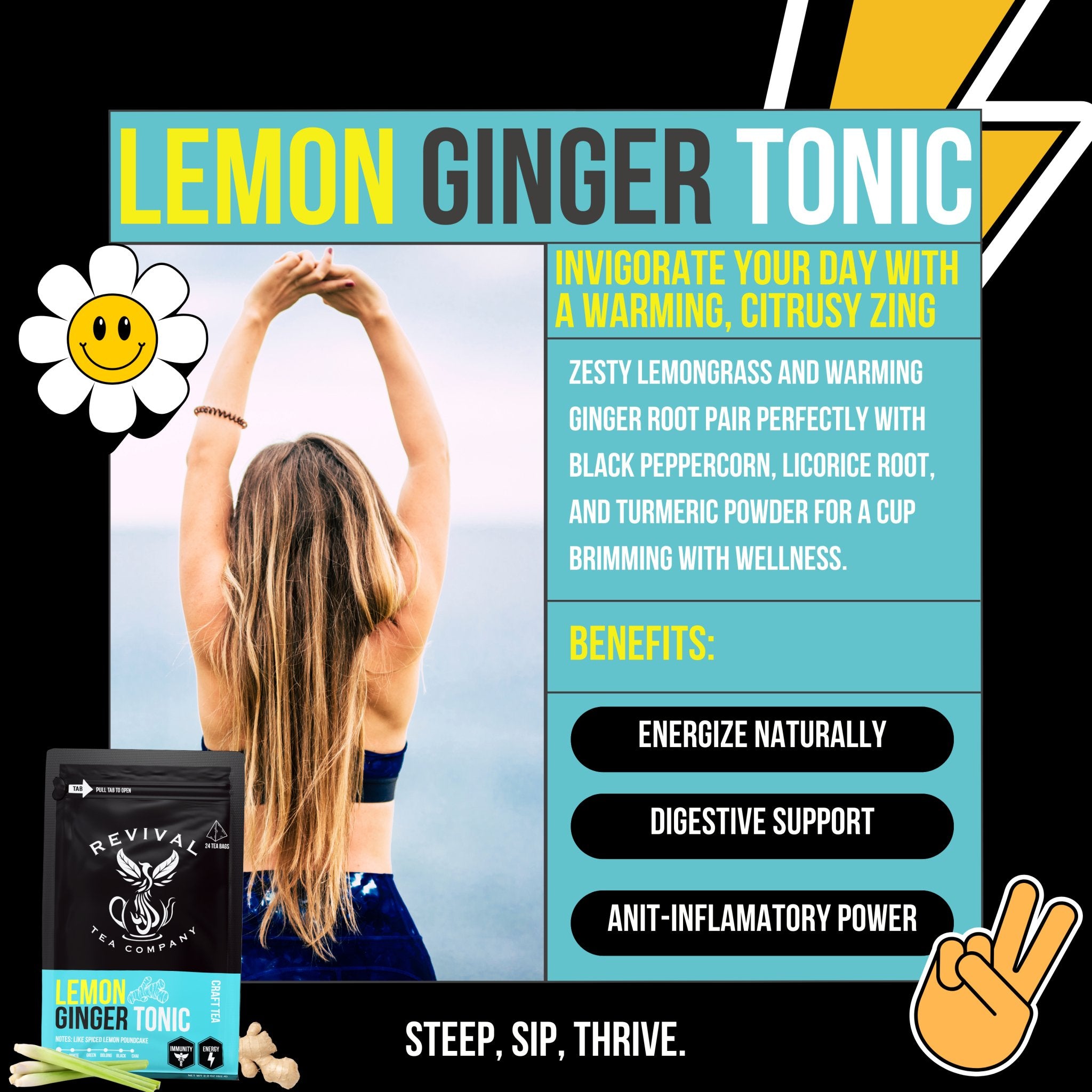 Discover the Difference: Elevate your tea ritual with our Lemon Ginger Tonic and experience the bold flavors of Revival Tea Company. Treat yourself to the invigorating taste of lemon and ginger and embark on a journey of zesty refreshment and refinement.