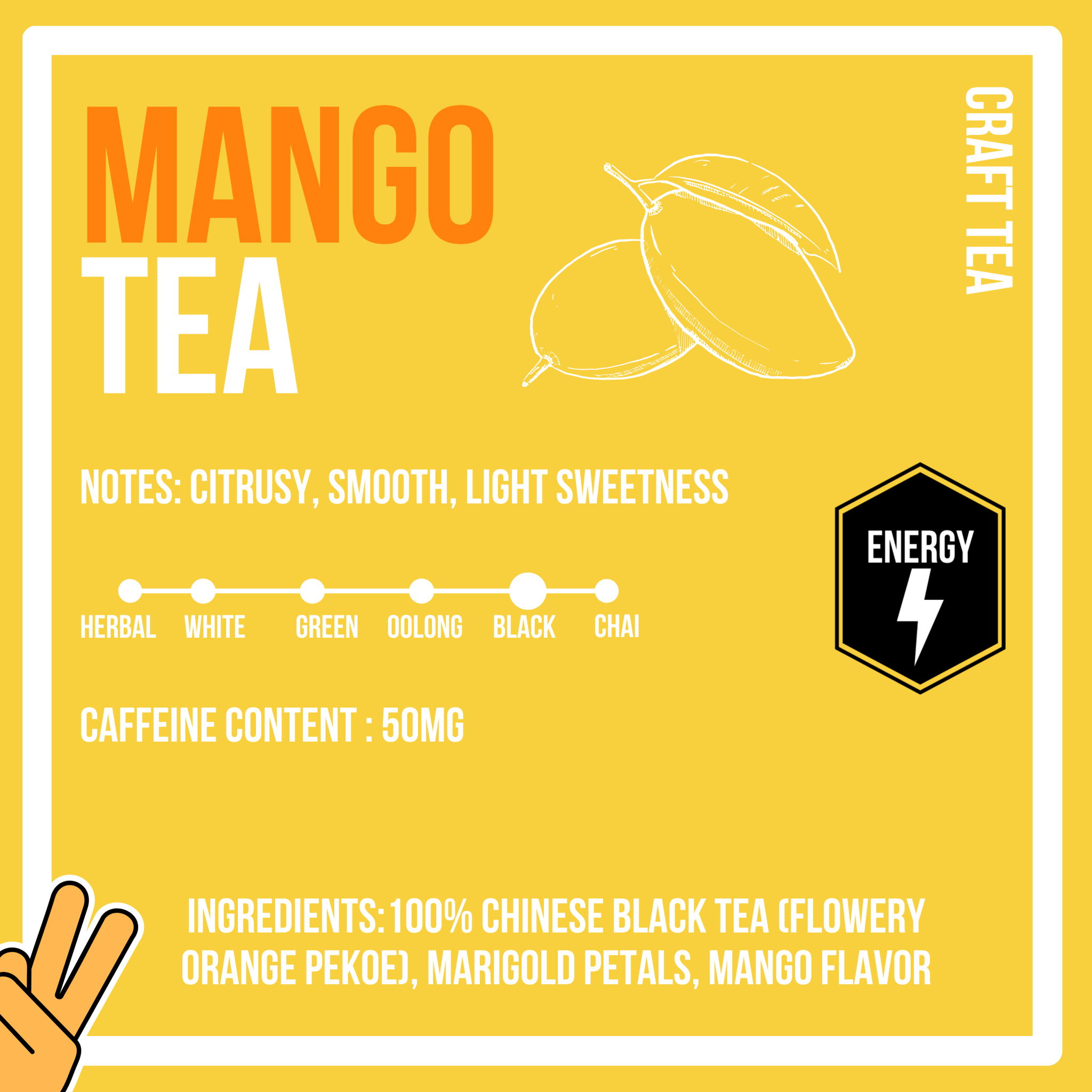 Exquisite Blend: Immerse yourself in the tropical bliss of our Mango Tea. Carefully crafted, this blend captures the vibrant essence of ripe mangoes, offering a luscious and refreshing experience with every sip.