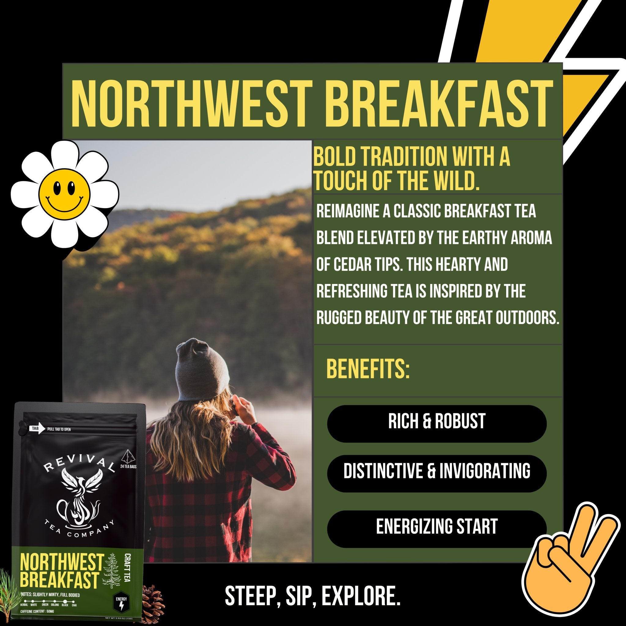 Discover the Difference: Elevate your morning routine with our Northwest Breakfast Tea and experience the essence of Revival Tea Company. Treat yourself to the robust flavor of our blend and embark on a journey of unparalleled elegance and refinement.