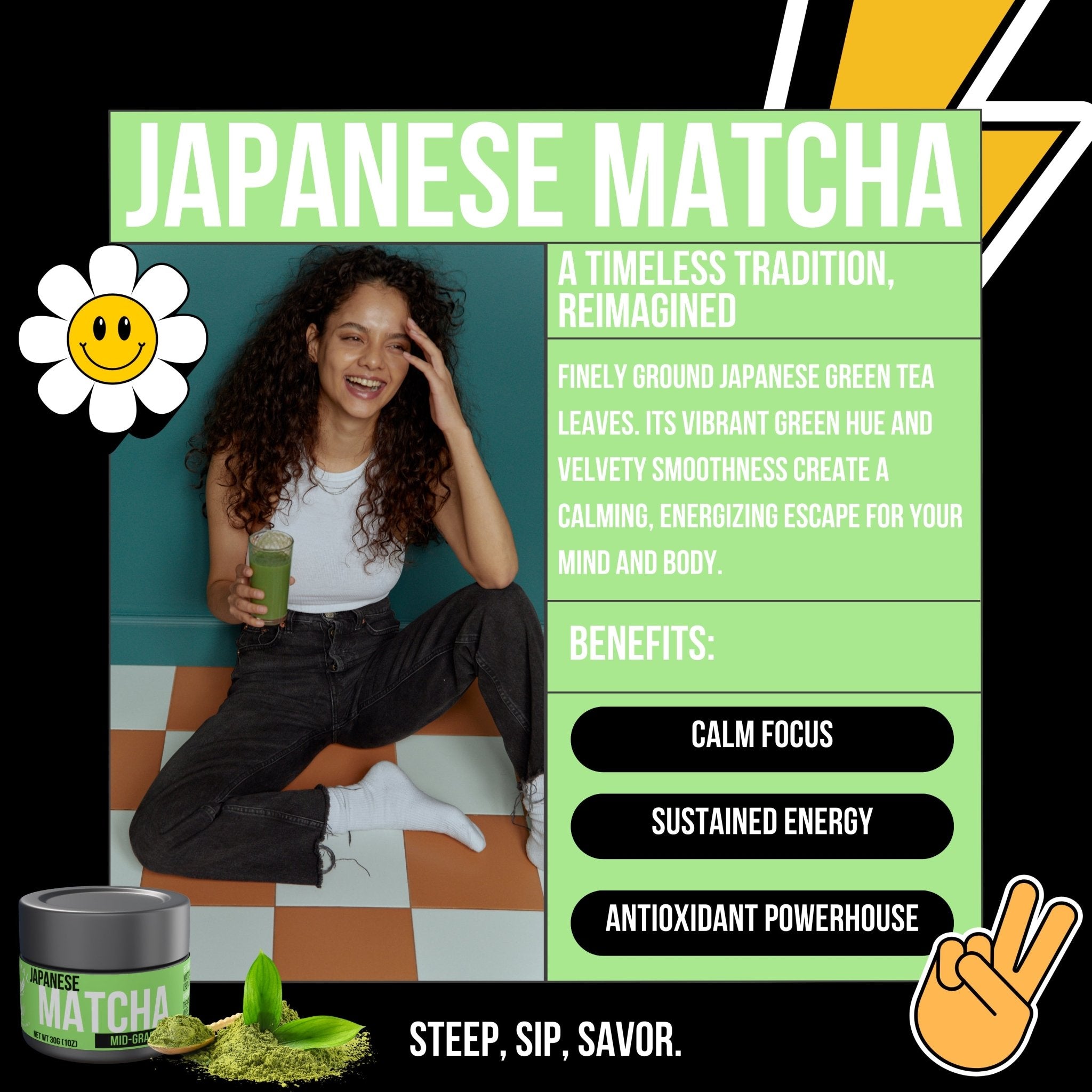 Health Benefits: Packed with antioxidants including the powerful EGCg, our matcha boosts metabolism and burns calories while detoxifying effectively and naturally. Its calming properties soothe the mind and relax the body, while its rich content of fiber, chlorophyll, and vitamins enhances overall well-being. Additionally, matcha aids in concentration and mood enhancement, providing essential nutrients such as vitamin C, selenium, chromium, zinc, and magnesium. It serves as a preventative measure against various diseases and helps lower cholesterol and blood sugar levels for improved health outcomes.