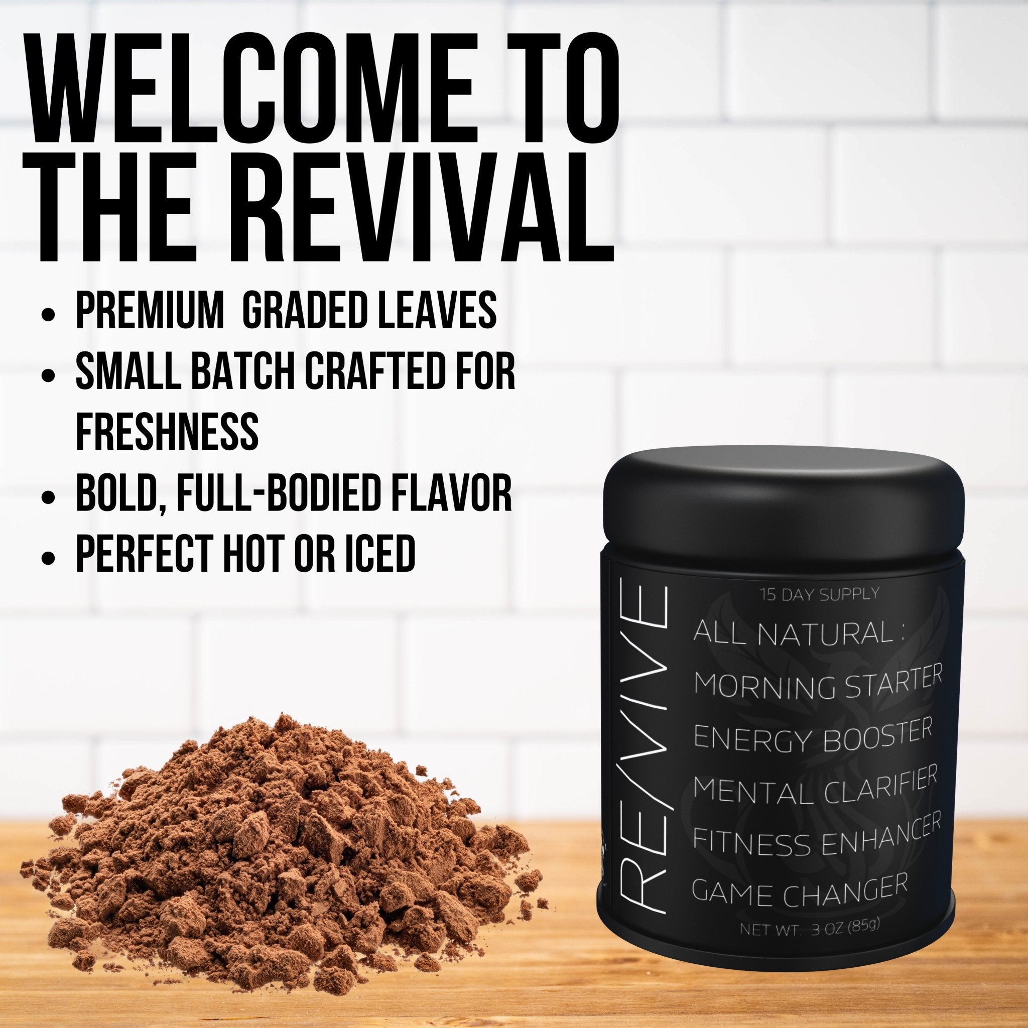 RE/VIVE is an all natural blend of ingredients packed with health and performance benefits. The dark super powder delivers a bold roasted flavor that will give you the energy and mental focus to conquer your day. Meet your new morning starter. Not Coffee. Not Tea. Not ordinary